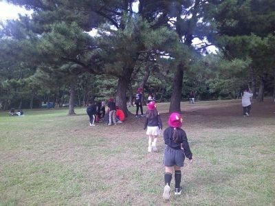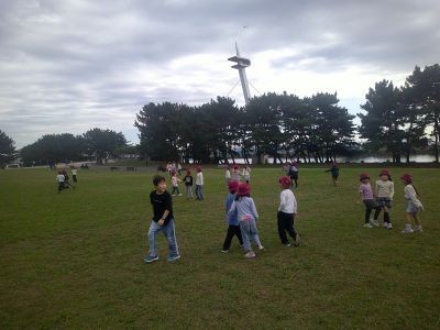 お昼を食べた後は、広い広い原っぱでたっぷり遊びました。思い切り走ったり、鬼ごっこをしたり、虫やどんぐりなどを探したり・・・。学校ではなかなかできないことを思う存分楽しみました。遊び疲れたのか、帰りのバスではぐっすり、という子も。