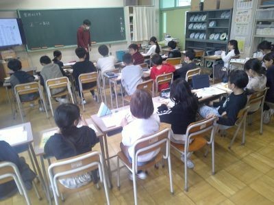 保健室にけがでやってきた人の数をわかりやすく整理するにはどうしたらよいか。どういうけがか、どこでけがをしたかなどの視点で表を使って整理していきます。4年生の算数です。その進め方を学んでいました。