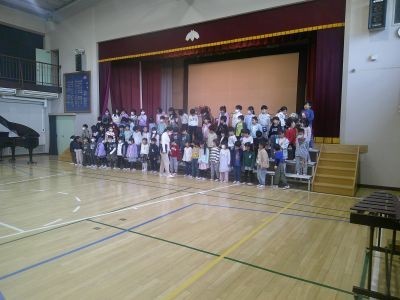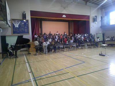 学習発表会に向けて体育館舞台での練習が始まっています。まずは音楽発表の並び方の確認などからスタートしていました。そしてみんなで音を合わせての演奏です。あと2週間。仕上げに取り組んでいきます。