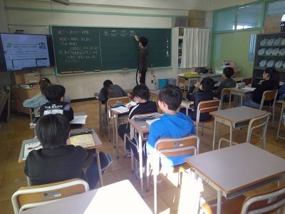 5年生の算数、前の時間は、速さ=道のり÷時間の学習。今日の問題は、時速80kmで走る車は3時間で何km走るかという問題。道のりの求め方を学習していました。子どもたちの理解がなかなか難しい内容です。