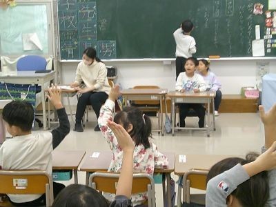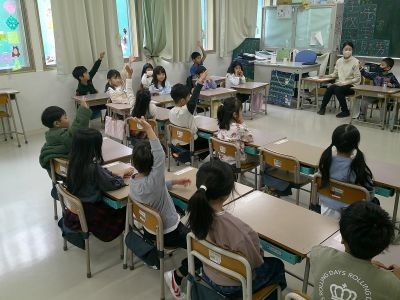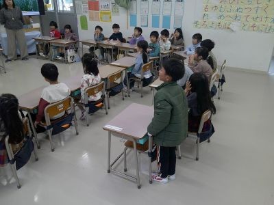1年生で話し合いをしている学級がありました。なわとび集会をやり方をみんなで決めるという内容。司会や記録の子どもたちを中心に、みんなの意見を聞きながらまとめようとがんばっていました。