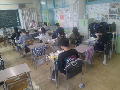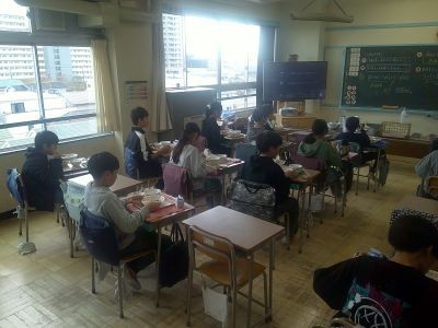 写真は6年2組の給食風景。静かな落ち着いた雰囲気の中、一つ一つの料理を味わっているようでした。