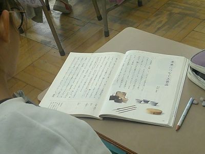 4年生が国語で読んでいる「未来につなぐ工芸品」という作品。筆者が考えを述べている中で、その「理由」をなんと言っているのか、説明する中で「例」として挙げているのはなにか、などに注目しながら読んでいました。