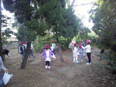 暦の上では冬になりましたが、1年生がどんぐりや松ぼっくりなどを拾いに学校のすぐ近くにある二之江神社に出かけました。境内のあちこちから、いろいろな秋を見つけてきた子どもたち。セミの抜け殻を発見した子もいました。