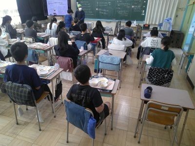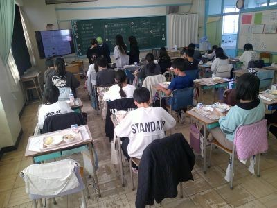 写真は6年3組の給食風景。季節の移り変わりを感じながらの食事でした。
