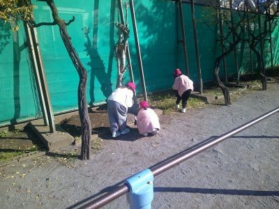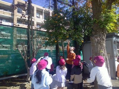 学校の中で見つけたものを誰かに知らせよう。1年生の国語です。端末をもって校庭に出て、植物や生きものなどを探します。見たり、触ったり、臭いをかいだりして、そこで感じたことをもとに伝える準備をしていこうとしていました。
