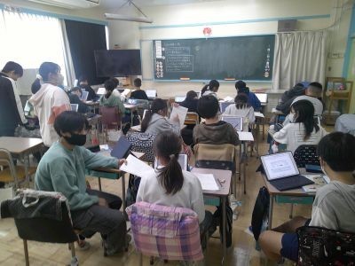「ミルク200ml、コーヒー300mlでおいしいミルクコーヒーができる。ミルクを4倍にしたらコーヒーは何倍にする?」。6年生の算数は比の学習。同じおいしいミルクコーヒーをつくる方法を考えていました。