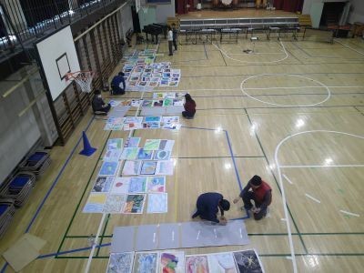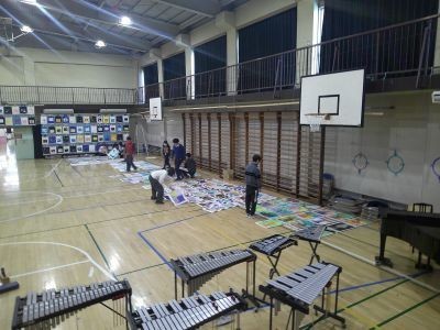 放課後、教職員で学習発表会の準備を行いました。会場となる体育館に作品を展示するなどして気分が一気に高まってきました。練習も大詰め。明後日金曜日は児童鑑賞日、土曜日は保護者鑑賞日です。