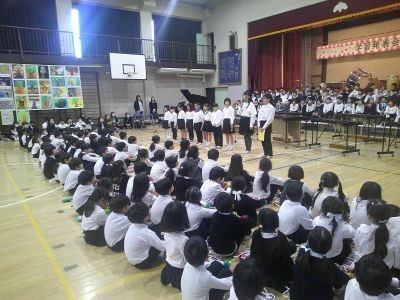 今日は学習発表会の児童鑑賞日。体育館に全員が集まり、まずははじめの会。6年生代表のはじめの言葉、各学年からの本番に向けた意気込みの発表などがありました。