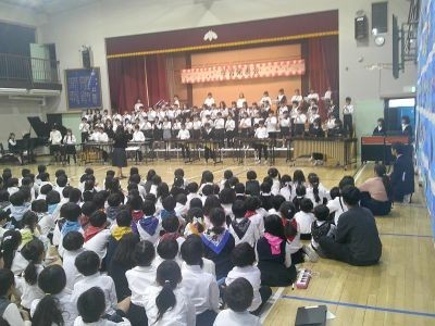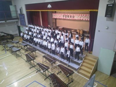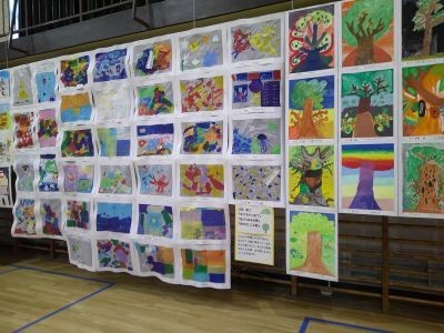 4年の図工作品は、取り組んだもの3つの中から1つを選んで展示しています。音楽では、自分たちの背中を押してくれるような躍動感あふれるメロディーを、みんなの気持ちを一つにして届けたいという思いでがんばりました。
