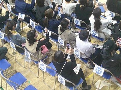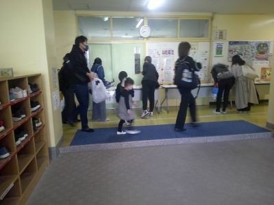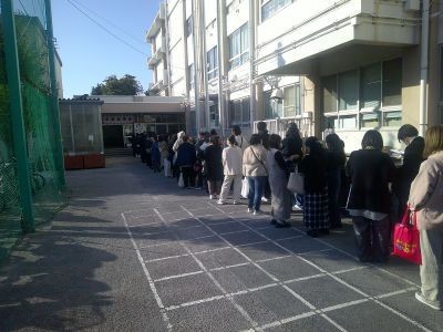 各学年ごとの入替での音楽発表。それぞれの受付時間に合わせてお並びいただき、受付後、体育館へ。前方の座席は各家庭1名分を抽選で指定させていただく形としました。ご理解、ご協力に感謝いたします。