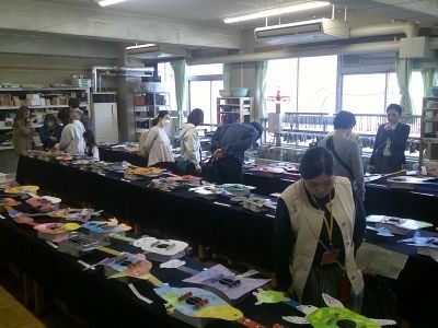 展示されている作品の鑑賞もしていただきました。がんばって取り組んだ様子を思い浮かべつつ、写真を撮っていらっしゃる方もいました。子どもたちの発想、工夫、苦労などが伝わったかと思います。