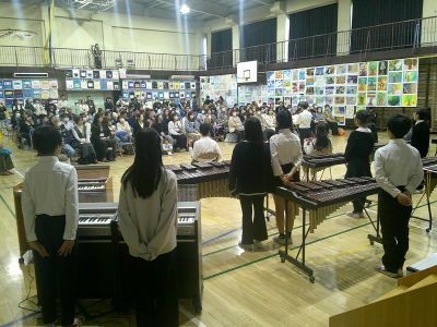 保護者鑑賞日、音楽発表の最後は6年生。今日もアンコールの声をいただいて合奏を再度披露。さらに、サプライズで保護者席の近くに行って「Smile Again」を歌いました。