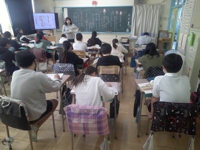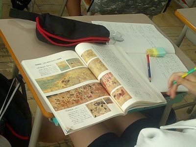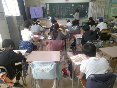 6年生が国語で読んでいる「「鳥獣戯画」を読む」。平安時代につくられた絵巻物を解説した文章です。文章と絵を結び付けて読むなどしながら、筆者の主張は何かを理解しようと学習を進めていました。