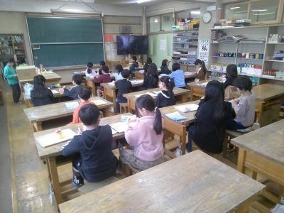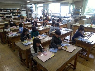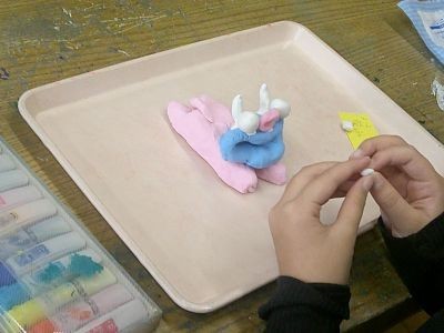 沖縄で有名なシーサー。3年生の子どもたちが図工の時間に紙粘土で作っていました。本物に比べると、カラフルでかわいらしいシーサーが多かったです。「お家で魔除けにする」と言っている子もいました。
