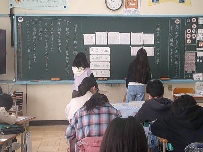 6年生の卒業作文に向けた取組が始まっています。自分の思いや考えをより効果的に伝えていくにはどうすればよいか。テーマを決め、具体的に書きたい内容を選び、文章の構成を考え・・・。先輩の文章を参考に考えている子もいました。