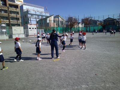 1年生が体育で取り組んでいたのはなわとび。一人で跳んだり、走りながら跳んだりして、だんだんリズムよく跳べるようになってきました。また、長縄にもチャレンジ。思い切って縄の下へ入っていく勇気が出てきて、成功する子が増えていました。