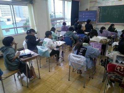 5年生が国語でアンパンマンの作者、やなせたかしさんについて書いてある文章を読んでいました。あまりカッコよくない、武器をもっているわけでもない、自分の顔を食べさせる・・・なぜ、そんなヒーローにしたのか。やなせさんの生い立ちや思いなどを読み取り、自分の考えをまとめて友だちと意見交換していました。