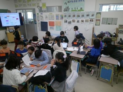 昨日町探検を行った2年生。そのまとめを行っている学級がありました。今回は学級で3つの場所へ別々に出かけています。どんなところだったのか、行っていない友だちにも伝わるように振り返り、整理していました。