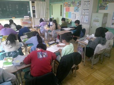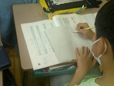 「柿食えば 鐘が鳴るなり 法隆寺」。正岡子規のこの句からどんな情景が思い浮かぶか・・・。4年生が国語で、教科書の俳句や短歌から1つを選び、そこから思い浮かぶ様子、景色などを絵にしていました。何となくイメージはできるようですが、それを絵にするのはなかなか難しいようです。