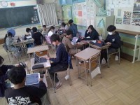6年生の体育はキックベースボール。苦手な子、得意な子、いろいろなので、ボールを投げてもらって蹴るか、置いて蹴るかは選択できるルール。思い切り蹴ったり、フェイントしてみたり。楽しく体を動かしていました。