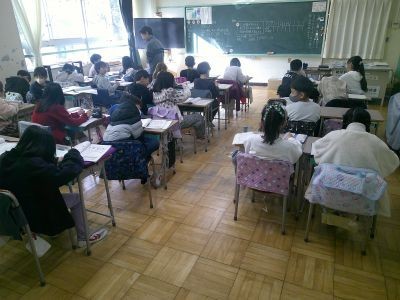 1個30円のお菓子を買うときのお菓子の数と代金の関係を表に書いたり、式で表したりする。4年生の算数です。お菓子の数を○、代金を△としたときにどのような式が成り立つかなどについて整理していました。