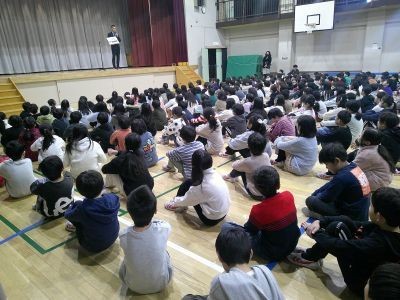 登校後、体育館に集まり終業式を行いました。代表児童の言葉、校歌斉唱などで式を終え、その後生活指導担当の教員から冬休みの過ごし方について話をしました。安全で楽しい休みであってほしいと願っています。