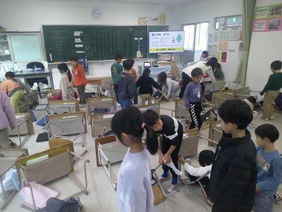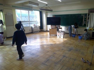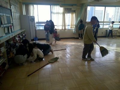 終業式後、各学級では大掃除を行いました。机やいすの足についてほこりをていねいに取ったり、机やイスを廊下に出して床をきれいにしたり・・・。すっきりさせて締めくくりをしたいと思います。