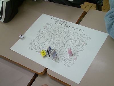 「大掃除した?」「おそば食べた?」「3学期楽しみなことは?」などと書かれたマスのあるすごろくをしていた5年生の学級がありました。友だちと一緒に楽しみながら、冬休みの振り返りを共有していました。