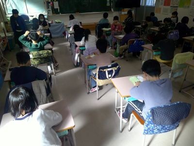 2年生が書き初めに取り組んでいました。お手本をよく見ながら、一文字一文字、ていねいにていねいに書き進めていました。みんな集中していて、教室は静かな空気、緊張感が漂っていました。