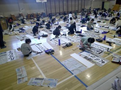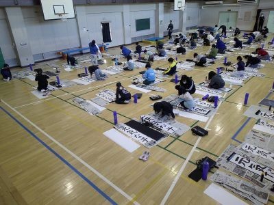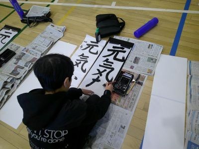 4年生の書き初めは「元気な子」。払いやはね、ひらがなの曲線など子どもたちにとってはいろいろ気を付けるべきところがあります。自分で書いた字をお手本とよく見比べて、次はどこに気を付けようかと考えて・・・。みんな熱心に進めていました。