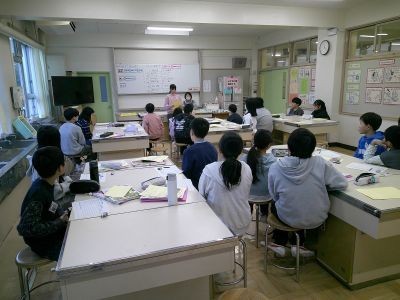 5年生が家庭科の学習の一環で、年末に家庭で大掃除にチャレンジ。その様子をみんなに発表していました。どこを、何を使って、どのように掃除したか。やってみてどうだったか。友だちの発表を聴きながら、道具ややり方の工夫を共有していました。