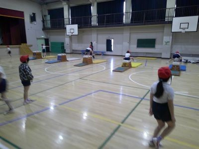 体育館で跳び箱を使って運動している2年生の学級がありました。助走して手を着いて跳び越すことがリズムよくできるように練習を重ねていた子どもたち。跳ぶ様子を動画に撮ってもらい振り返りながら練習を重ねていきます。