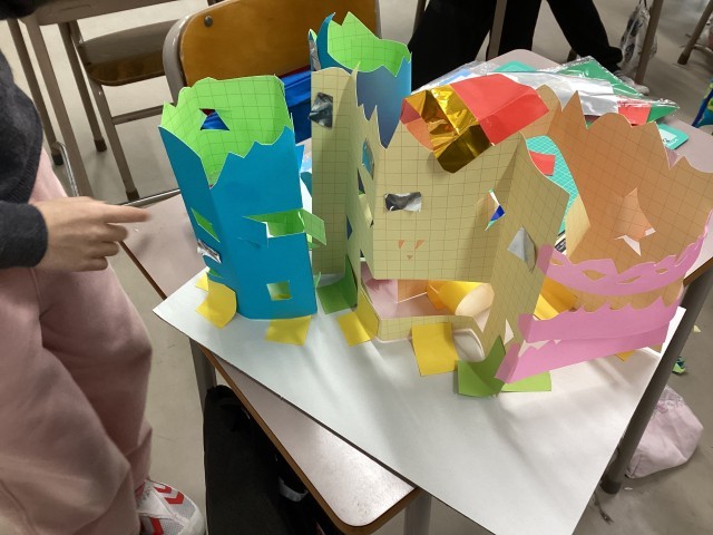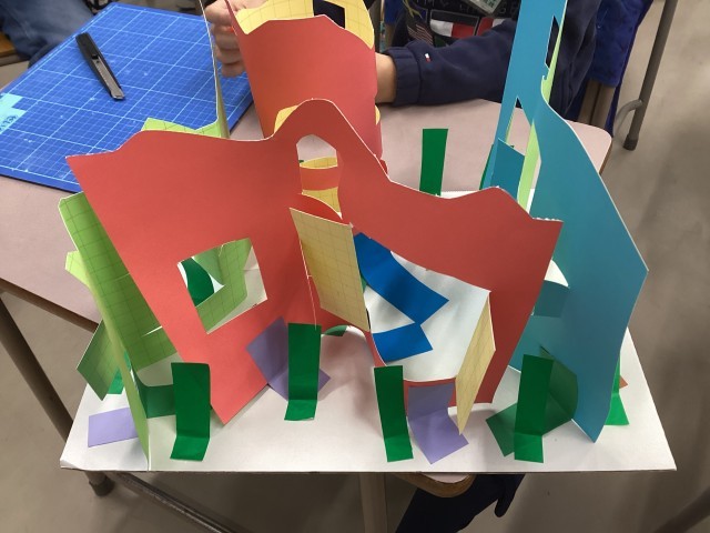 カッターを使った学習が進んでいます。2年生の図工の授業です。はじめはカッターに恐怖心を抱く子がたくさんいましたが、5時間目ともなると使いこなす子が増えてきました。「魚の形の窓にしてみよう!」「画用紙を重ねて、二重の窓にしてみよう!」友達と相談しながら、素敵な作品ができました。