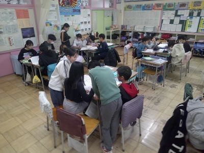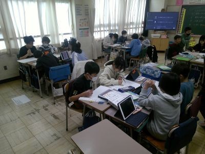 5年生が理科で生命の誕生にかかわる学習をしていました。受精卵のでき方、母体の中でどのようにして養分を得ているのかなど、それぞれでテーマを決め、友だちと協力しながら調べたりまとめたりしていました。