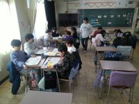 ICT支援員の説明を受けながら、プログラミングについて学習している5年生の学級がありました。どういう指示をすればどのような変化が起きるのか、プログラミングによってどのようなことが可能になるのかなど、実践しながら学んでいました。