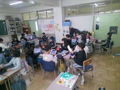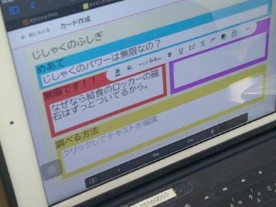 3年生が理科で磁石のパワーは無限大なのかを予想していました。パッと見たところ無限大派が多そうで「給食のロッカーの磁石はずっと付いたままだから」などの理由を挙げていました。一方で「弱い磁石もあるから時間によって変わる」と予想した子も。確かめてみることが楽しみなようです。