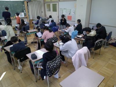 冬の俳句作りに取り組んでいた3年生の学級がありました。雪、冬休み、スキー、セーター・・・冬の季語をみんなで出し合い、それぞれで俳句をつくります。「大みそか かぞくみんなで ゲームしよう」など自分が切り取った様子を5・7・5にしていました。
