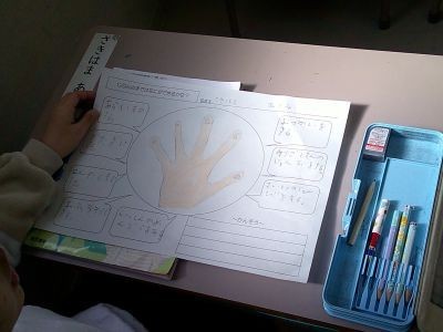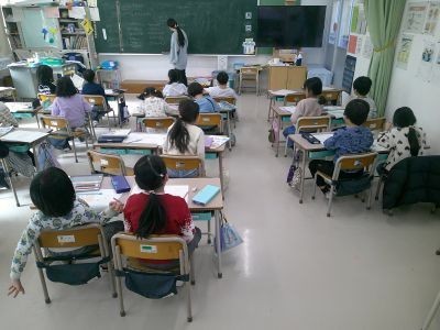 1年生が生活科の学習で、自分の力でできるようになったことを話し合っていました。ワークシートに書いたことを発表。「お皿を洗う」「洗濯物をしまう」「テーブルを拭く」「片付けをする」など家の中でのことがたくさん出てきました。