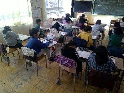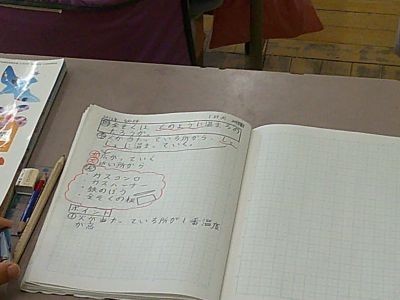 金属に火を当てたらどんなふうに温まっていくか?火を当てたところから少しずつ広がっていくように温まる、火が当たっているところの温度が一番高い・・・。子どもたちの予想、考えです。実際に実験して確かめていきます。4年生の理科です。