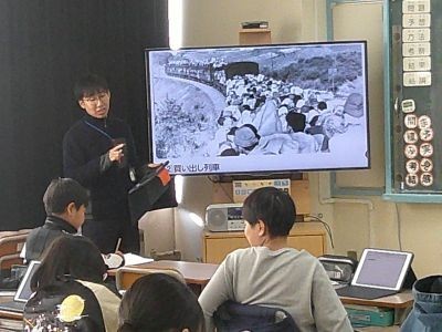 6年生が社会で戦後の日本の生活を写した写真をもとに、当時の人々のくらしを考えるなどしていました。また、現代の生活とも比べ80年の間にどのような変化があったのかにも注目していました。