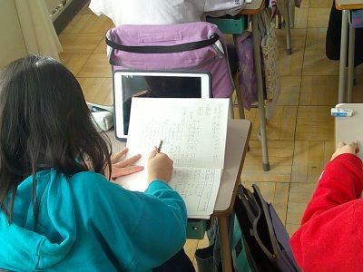 「公園の利用者が増えている」という表現。数人多くなって「増えた」と捉える人もいれば、数百人多くなって「増えた」と捉える人もいます。表現されていることは事実なのか、印象なのかを見極めることの大切さなどについて、教材文をもとに読み取り、考えていました。5年生の国語です。