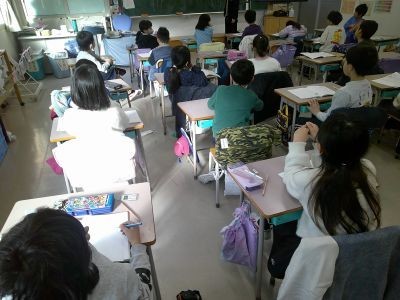 2年生が国語で読んでいたのは「ロボット」という話。子どもたちが知りたいと思ったのは「ロボットはどうやって作られる?」「ロボットはどうやって動く?」などなど。それらをもとに、これからどのように学習を進めていくか計画を立てていました。