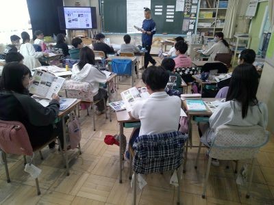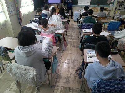 6年生が社会で学習していたのは、戦後、日本が国際社会に復帰していく様子。みんなで教科書を読み進めるなどしていました。教科書を声に出して読むと、うまく読めなかったり、意味がよくわからず立ち止まったりすることがあります。教科書の記述をしっかりと読み取る力を育てることも大切です。