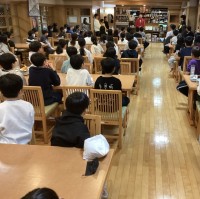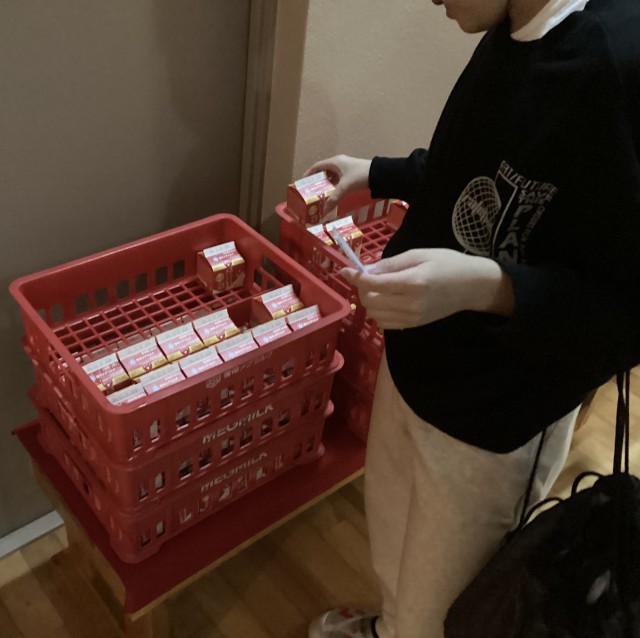 にゅうよくです。友だちとみんなで入るお風呂は格別のようです。にぎやかに、マナーを守って体を温めていました。風呂上がりには飲み物を受け取りました。