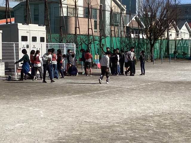 学級活動の話し合いで決まった集会で「バナナおに」と「ケイドロ」を楽しみました。
