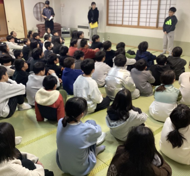朝会です。最終日、来たときよりも部屋をきれいに、をみんなで確認しました。
