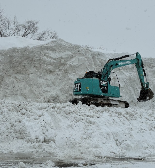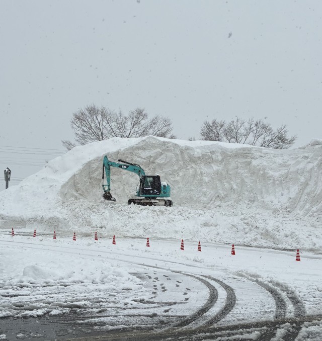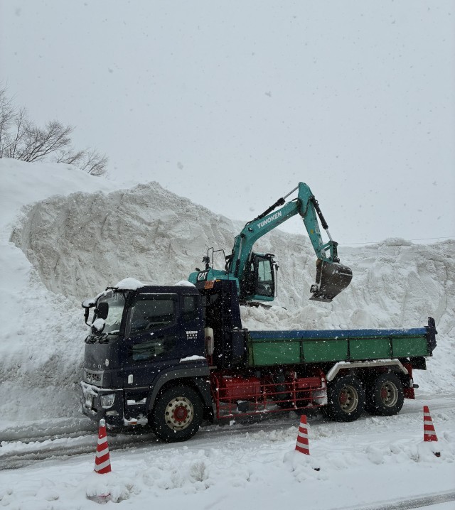 お土産を購入した深雪の里の駐車場には、除雪で集められた雪が山のような高さになっていました。その雪をさらに廃棄するためにトラックへ積む作業も行われていました。日本有数の豪雪地帯であることを再認識しました。