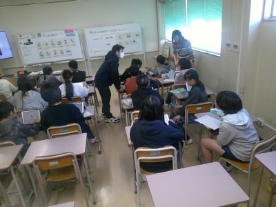 6年生の英語、中学校でやりたいことを尋ねたり答えたりしていました。「What do you want to do in Junior high school?」などと話すスピード、テンポもよく、4月からが楽しみに感じました。