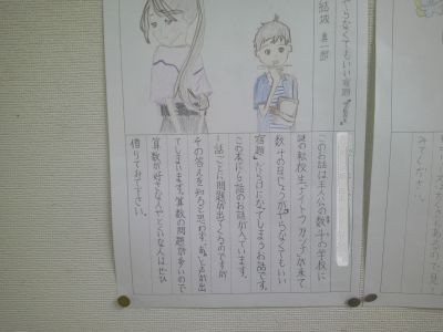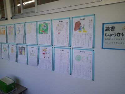 いくつかの教室の前に本を紹介するカードが掲示されていました。読書週間の取組の一つです。みんなに紹介をすることで、さらにその本が好きになったり、読書への意欲が高まったりすると思います。